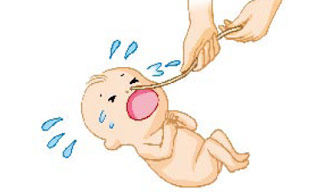 刚出生的胎儿,在鼻子和口中会残留羊水。出生以后,他将会用肺呼吸,所以,在鼻腔和咽喉部的羊水和血液及黏液等要用导管将其吸得干干净净。